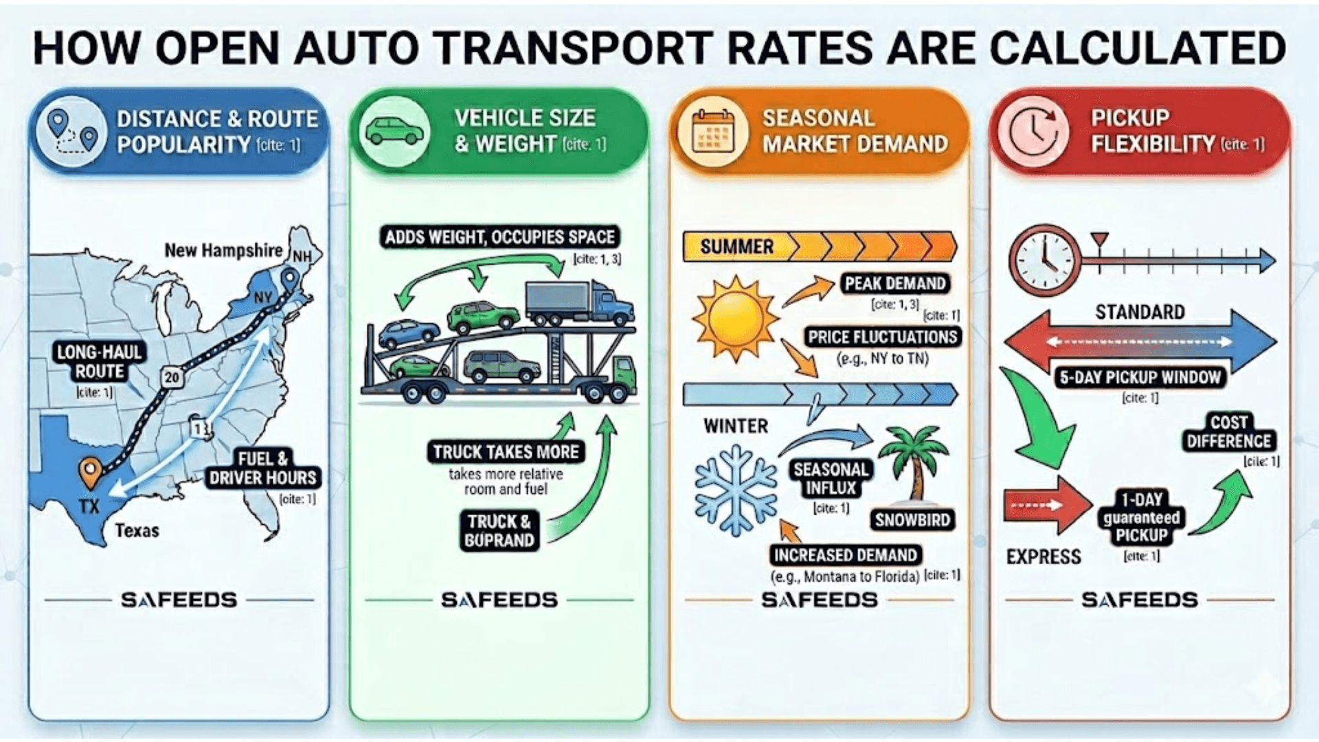 While open auto transport is the most affordable shipping method, several variables determine the final rate. Understanding these factors allows for better budget planning and prevents "sticker shock" during the booking process. To ensure transparency, we analyze four primary pillars that impact your total cost: