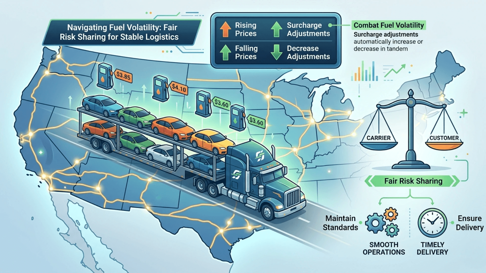Ensuring Delivery Completion: For heavy-haulers and multi-car carriers that consume vast amounts of fuel to move loads across thousands of miles, the surcharge ensures they have the liquidity to complete the delivery without service interruptions.