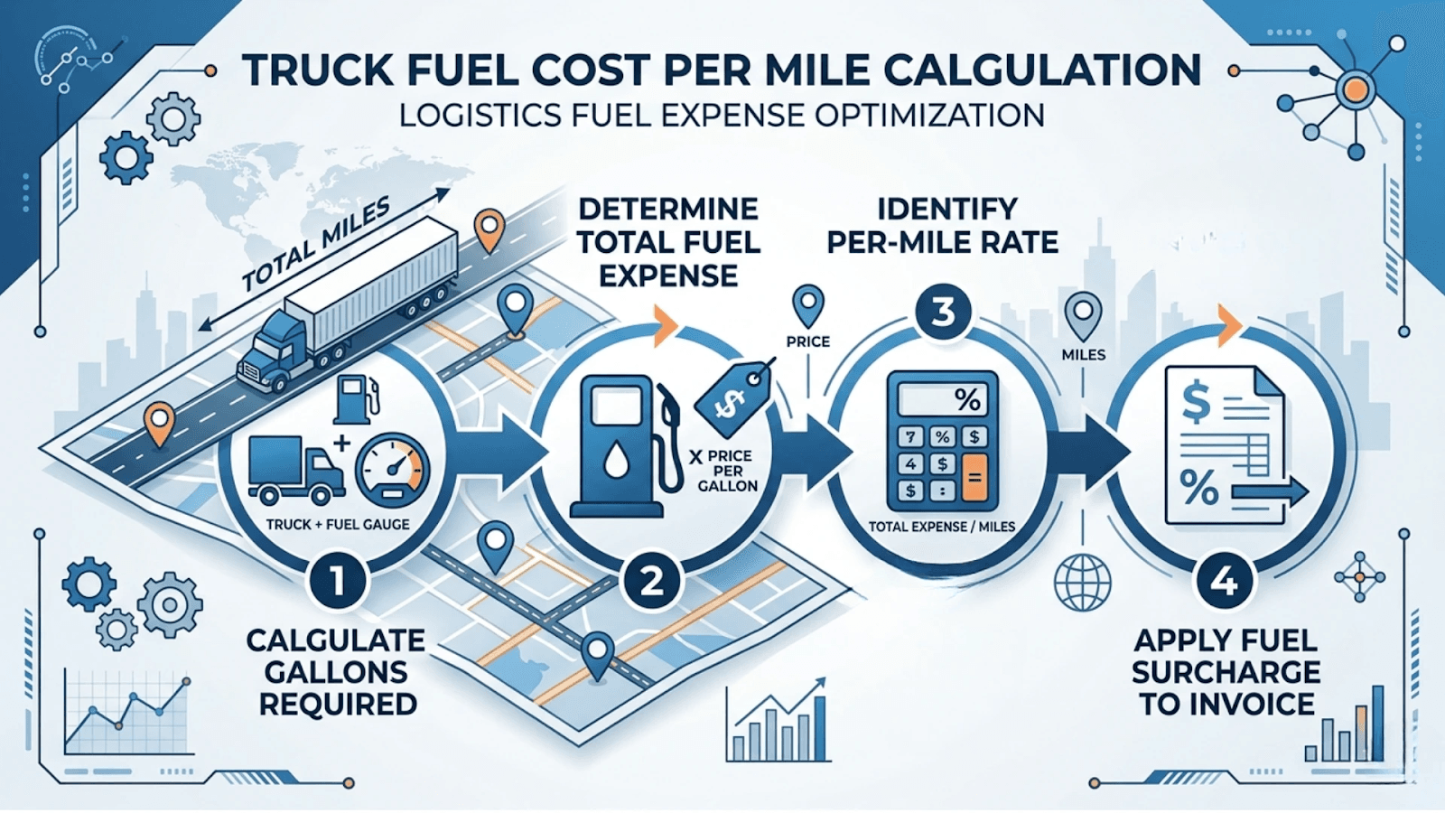 Calculate Gallons Required: Divide the total trip miles by the truck’s average MPG to determine total fuel consumption.