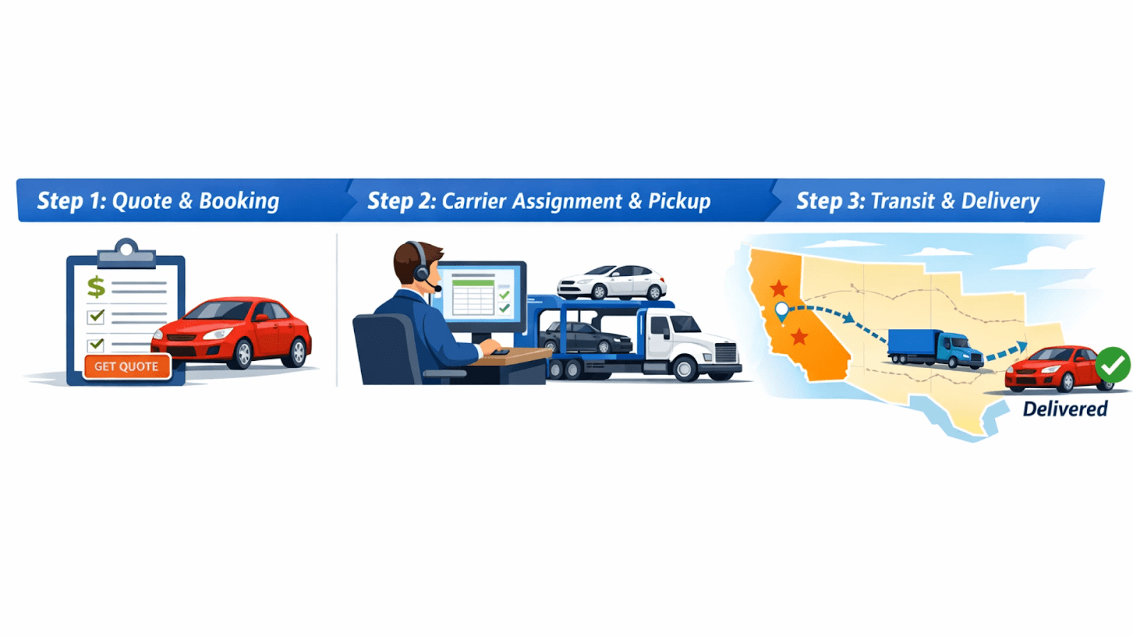 Once booked, a dispatch team identifies a carrier operating along the car transport route from California to Texas that possesses the appropriate cargo insurance limits. You will receive a specific pickup window and a call from the driver.