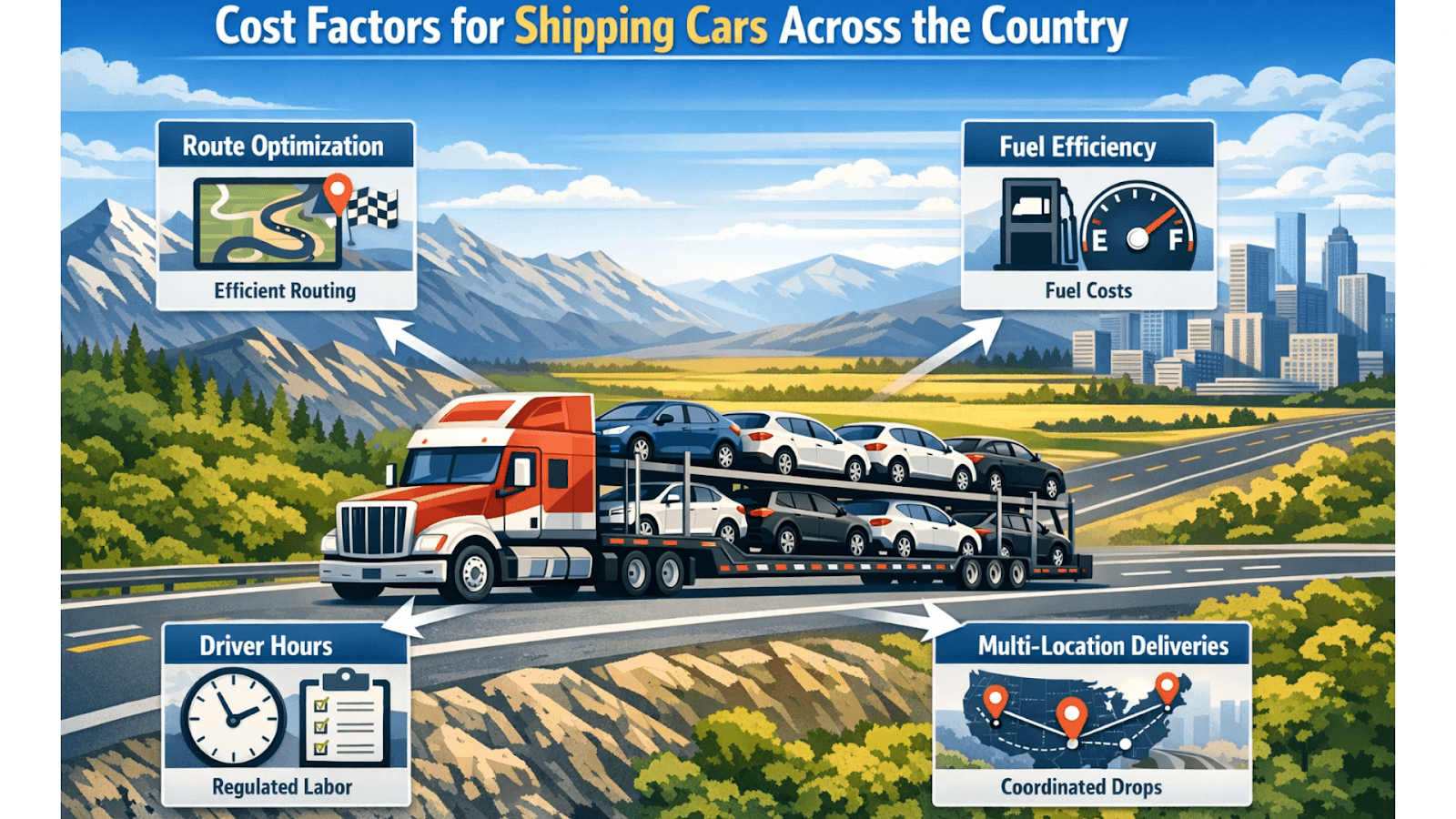 The cost to ship a car cross-country is primarily driven by three critical factors: fuel overhead, driver labor regulated by federal Hours of Service, and precision route optimization. When moving dealership inventory from coast to coast, determining the final cost to ship a car cross-country becomes a complex game of logistical math that must account for every mile traveled.