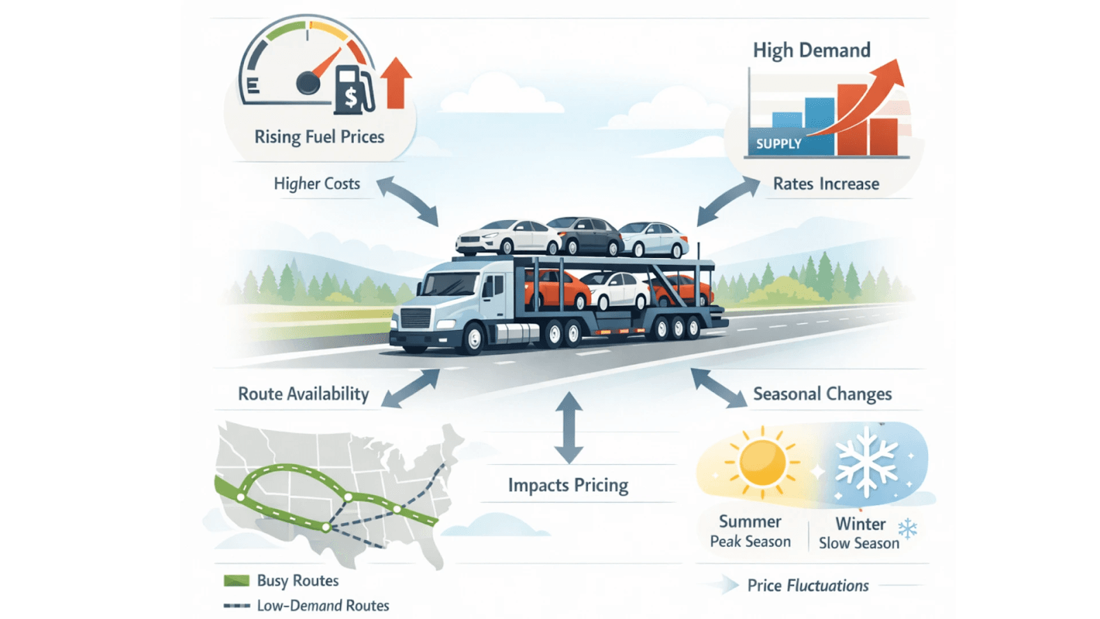 The logistical landscape of the United States is constantly shifting, with several external variables directly impacting the final car shipping cost. Because carrier companies operate on thin margins, their pricing structures are highly sensitive to the following market pressures: