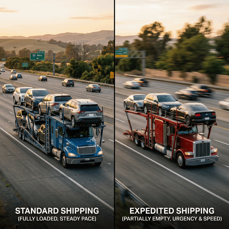 Urgency is a premium commodity in the transport world. Standard shipping involves a window of several days for pickup as the carrier coordinates a full load of vehicles. If a customer requires "expedited shipping," the carrier may have to divert their route or leave with a partially empty trailer to meet the deadline.