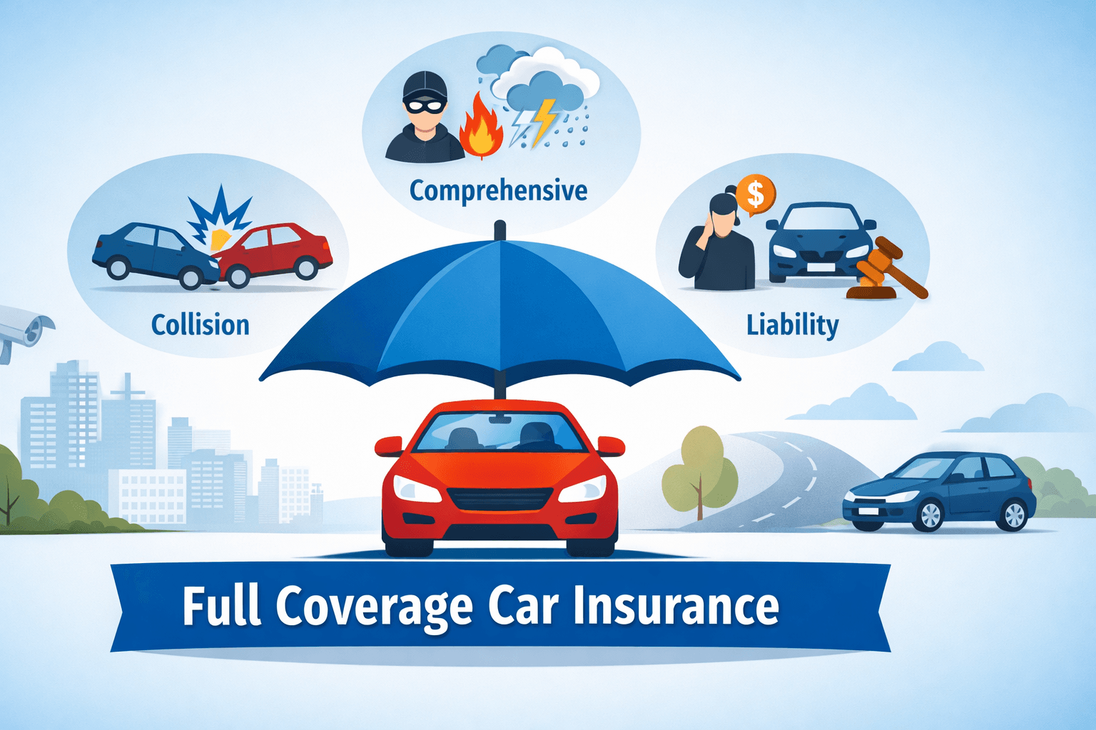 Full coverage is a combination of three essential protections: Liability, Collision, and Comprehensive. Liability covers damages you cause to others, while Collision and Comprehensive work together to repair or replace your own vehicle following accidents, theft, vandalism, or natural disasters. Together, these components ensure you are protected against nearly all forms of financial loss on the road.