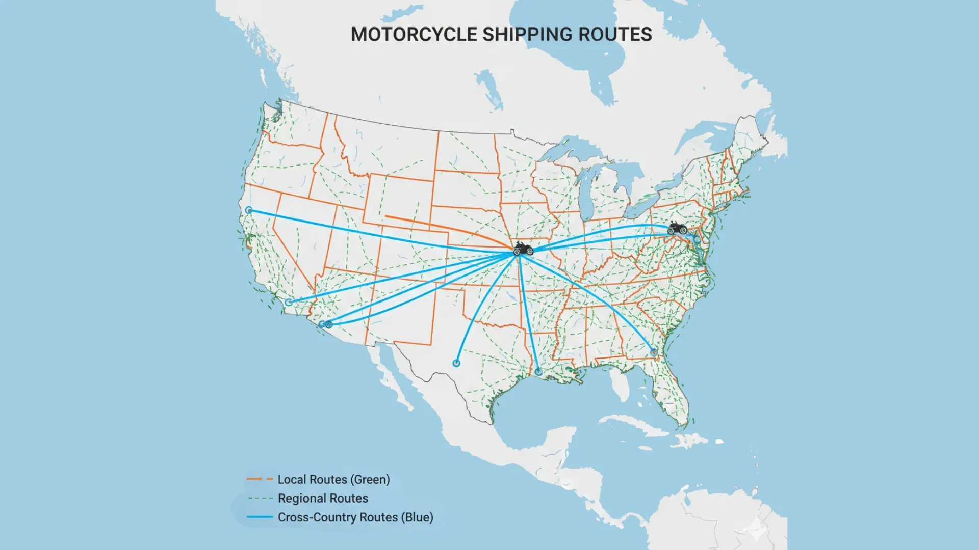 Distance isn’t just miles; it’s pricing. The cost to ship a motorcycle cross-country differs drastically from regional or local shipping: