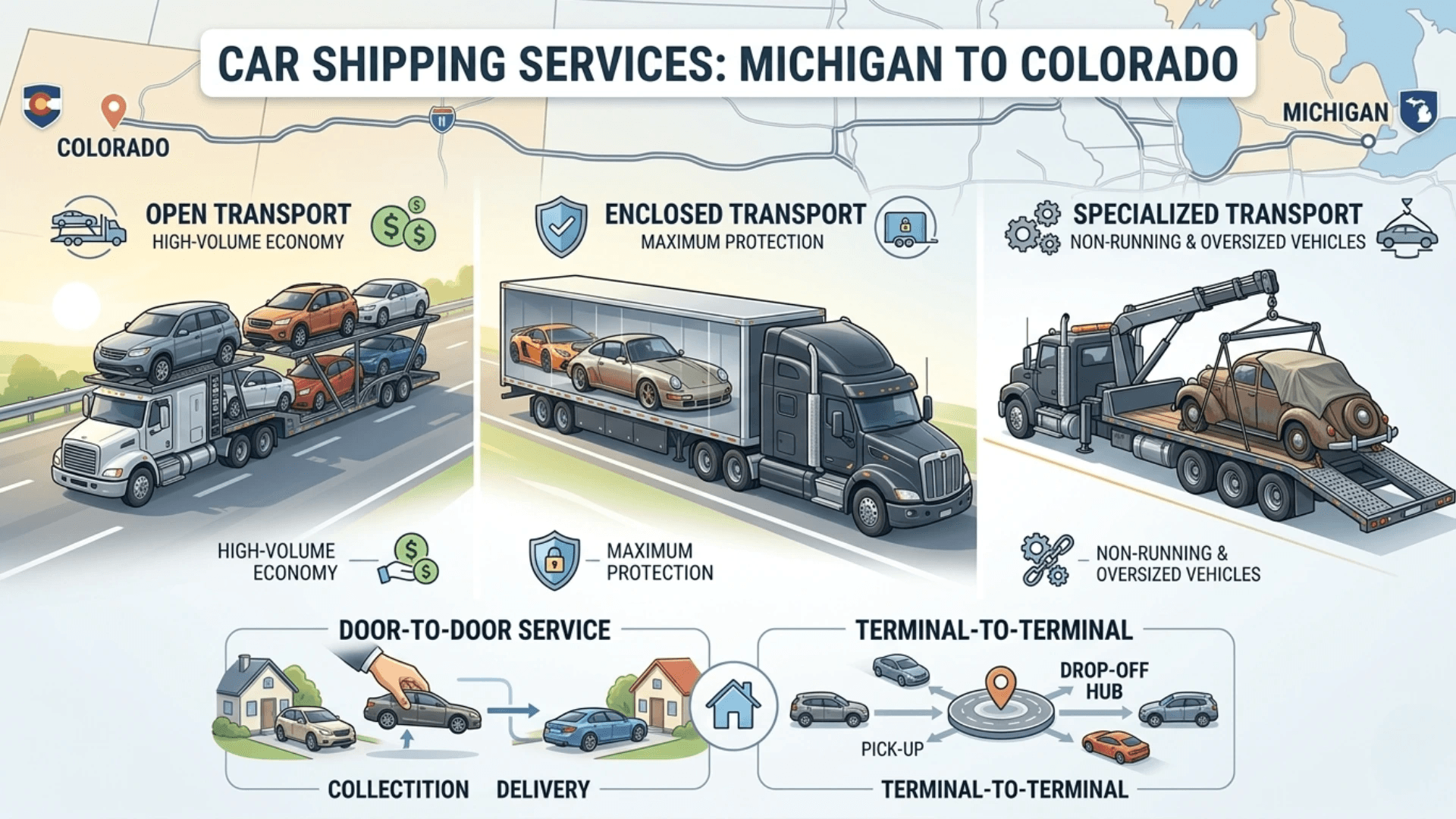 The cost to ship a car from Colorado to Michigan typically ranges from $950 to $1,500, depending on vehicle size and the chosen transport method.